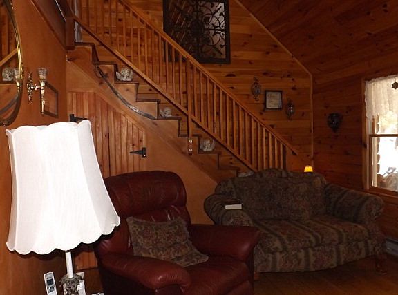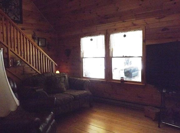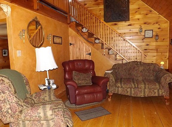 Cozy log home nestled in the woods on the bank of the creek, large eat-in kitchen features many improvements - even a copper sink, living room with wood stove and newly refinished pine floors, 2 bedrooms and full bath on first floor, 1 bedroom and loft on upper level, covered porch, large Trex deck overlooking the creek, 2.89 very secluded acres, walk to Lake Mokoma (apply to become a member if you'd like)--
