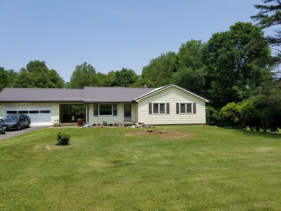 Ranch single family, 3 BR, one bath 1250 sq ft 1.3 acres cleared w/ shed . Remodelled kitchen with new cabinets, sink, countertop, gas stove and microwave, hardwood floors throughout, ample storage, new gas furnace, new water pump, new roof and 6 inch gutters, full basement with cement floor, breezeway w/ two car garage, Sugargrove Twp, Greenville school district.