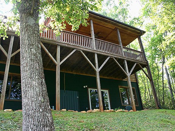 Beautiful cabin situated at the end of a private road in an established community of Gateway Mountain. 3,000 acre gated community within 30 min to Black Mountain, 45 min to Asheville. 4 bdrm/ 2 full bathrooms on the main floor. Kitchen features ample cabinet space and an island opening up to the living area complete with fireplace. LAKE GEORGE PRACTICALLY IN YOUR BACK YARD. Large deck across back of house (partially covered). Covered front porch. Lower level: Large family room, bonus room/ bedroom with guest beds. Double doors to access the lake and hiking trails. This home is an established vacation rental. Furnishings negotiable. Appointment required. No drive-bys.