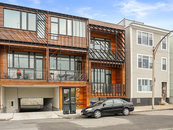 Rarely available south facing waterfront boutique luxury condo in the super hot Jeffries Point. 2017 construction featuring modern architectural design including a grandiose cedar & steel facade, exposed duct work, recessed cedar deck overlooking Boston Harbor & Marina. This spacious bi-level loft offers over 1000 SF, 2 private decks, Garage parking, Central heat & A/C, NEST thermostat, 5" brushed oak flooring, recessed lighting, front loading washer/dryer, gas fireplace. Contemporary kitchen features Calacatta quartz countertops, glass subway backsplash, Jenn-Air appliance package with 5-burner gas range, drawer microwave & hood. Large master bedroom with walk out deck, Calacatta marble tiled master bath with floating double vanity & Mirabella soaking tub. Incredible waterfront location steps to restaurants, piers park, KO pies, ICA Annex and the MBTA Blue Line.