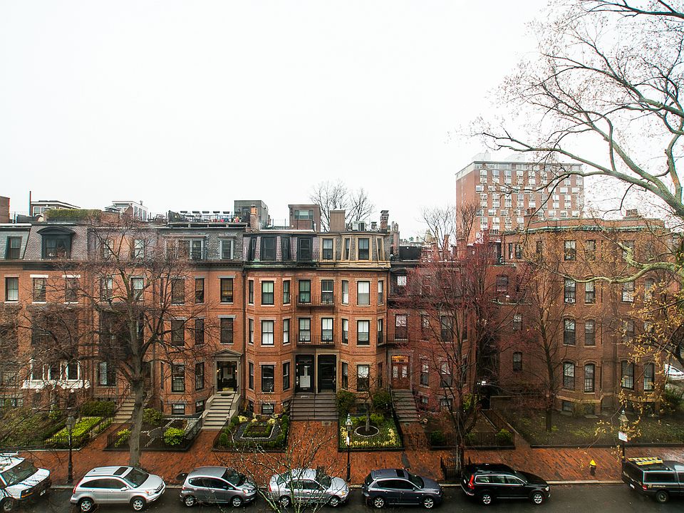 Private home feeling with stunning marble entrance. Classic penthouse on Marlborough Street with deeded parking spot featuring private foyer leading to triplex living area. Master Bedroom with fireplace, hardwood floors and spa-like bath. Oversized living room / dining area with original fireplace, exposed brick, and high ceilings. Open designer chef's kitchen with Carrera marble fireplace in the sitting/eat in kitchen area. Two additional bedrooms, full bath, and an open bonus space currently being used as a sleeping / playing area. Terrific Views from all windows. Central AC, w/d hookup. Closets galore. Architectural plans drawn up for potential walk out roof deck with double doors. Ideally located on picturesque Marlborough Street steps to The Charles and Newbury. Great proximity to the best of Back Bay, South End, Beacon Hill and Cambridge.