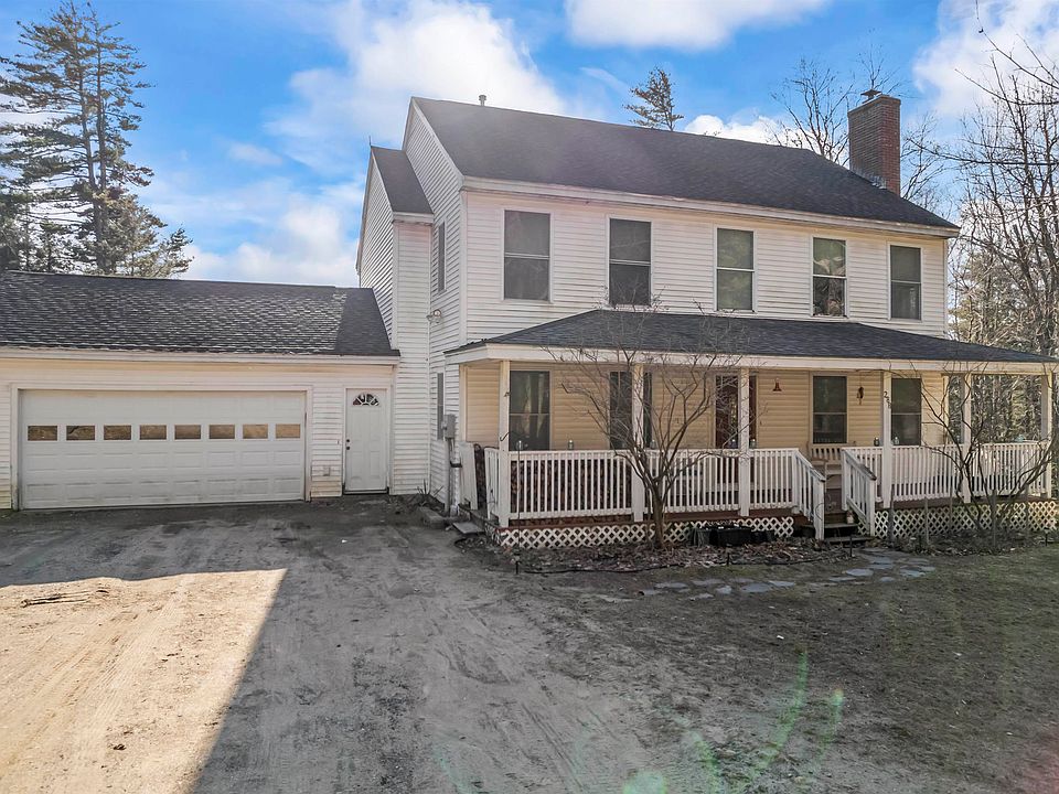 Great opportunity to have a home in the country with private acreage and square footage large enough for everyone to have their own space. Beautiful classic colonial with farmer's porch and 2 car garage. This home overlooks a large back yard with a small spring fed pond, surrounded by woods and yet close enough to major shops and amenities in Rochester, NH. Bright and open kitchen offers granite countertops, living room has woodstove to off set fuel costs, and main floor has a large office or can be used as flex space. Other features include 4 spacious bedrooms, central AC with propane heat, formal dining area, and huge open basement.