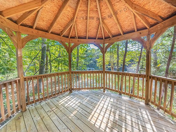 This spacious waterfront home is situated on over 3.5 partially wooded acres creating a private tranquil setting. Designed for easy main floor living, the kitchen and dining area flow into the light filled living room with French doors leading to a screen porch and large deck, ideal for entertaining. Hardwood floors run throughout the first level. Working from home is easy in your own office complete with a wall of built ins. Upstairs you will find two additional large bedrooms and a lounging area. As you stroll towards the dock, stop for a moment to relax in the screened in gazebo & admire the sweet water views. Ideal spacious family home with lots of outdoor space to explore and enjoy.