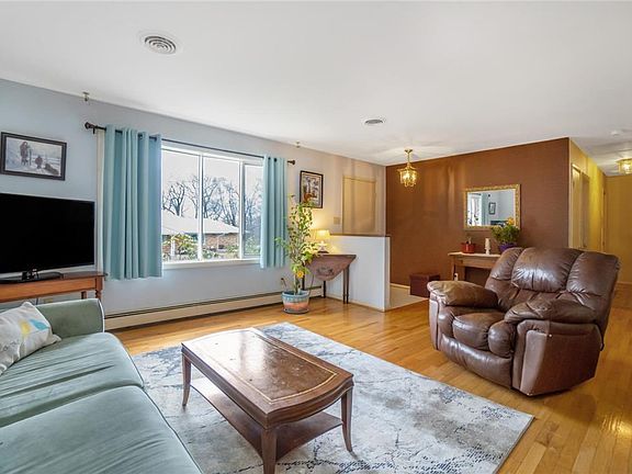Enjoy one-floor living in this PRISTINE RANCH home with 3-4 bedrooms & 2-1/2 baths! Hardwood floors through-out most of home. Bright Living room with Bay window views, opens to Dining area. Chef's Kitchen offers double ovens, 2 sinks, under-cabinet lighting, revolving pantry cabinets and plenty of Granite countertop space for food prep & bar stools.  First floor laundry off kitchen. Office/ Den could also be great nursery/4th Bedroom. Master bedroom offers 3 closets!  2 full baths on main floor. Finished basement w/ full entertaining kitchen can be perfect family room, man cave, or rec room for the kids!  Storage room & ½ bath in lower level. Central Air for those hot summer days. Back yard offers patio for summer cookouts. 2 car garage with work area. Quiet St. is minutes to shopping, parks, & easy commute. This home is MOVE-IN READY!