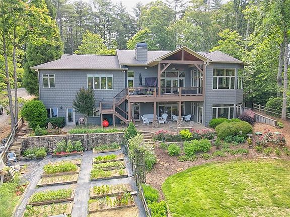 The Perfect Lake Nottely Home! This incredible property offers a total of 5 Bedrooms, 5 Full Baths plus 2 Half Baths. A gentle walk to the lake leads you to a double decker dock in a deep water cove just off of the main part of the lake on the north end of Lake Nottely! A large 3 car garage with well laid out, very charming carriage house above with its own laundry, kitchen, living room, bedroom/full bath & is currently a successful VRBO. Great outdoor space with lovely deck & porch areas, fire pit with seating area and a garden spot. BRMEMC fiber optic internet. Total sq footage according to county records includes the carriage house living space. This is a premier home on the Lake and the living space is amazing! This is one you don't want to miss!