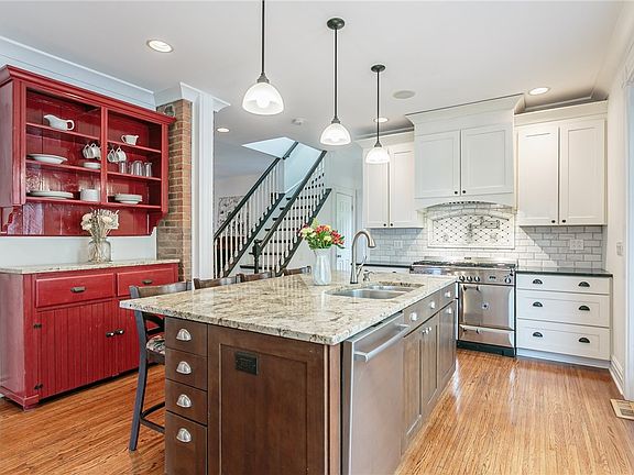 Dream home with a spacious chef's kitchen with exquisite granite countertops, 4-stool island & state-of-the-art 2 oven gas stove. The walk-in pantry provides ample storage, while the pot filler and marble backsplash add a touch of elegance and convenience. Complete with a dog door, the mudroom ensures that both you & your furry friends will feel right at home. Views of the fenced in backyard are framed perfectly by a 12-foot wide double-door slider that opens up to your outdoor dining and maintenance free deck. Cozy up by one of the 2 gas fireplaces on the 1st fl and enjoy the beautiful hardwoods and natural trim. 2 staircases will lead you up to the 2nd fl where you will discover 4 spacious bedrooms, large jacuzzi bath & 2nd floor laundry. The 3rd fl provides a huge bedroom & lounge area. Dry finished basement with kitchen. 3rd fl +basement add 1000+sq ft. The versatile 2+ car garage includes a rec room with a 1/2 bath, a loft featuring a bar, with a 2nd 1/2 bath & a cozy wood fireplace-ideal for having your own Super Bowl party! Parking 10+cars or boat/RV. Relax by your sparkling in-ground pool. Open House Saturday, June 8th 1-3pm. Offers Due Tuesday June 11th at 1pm.
