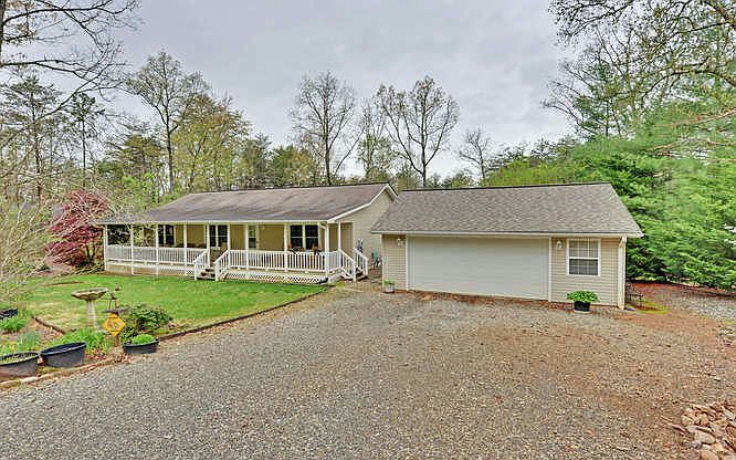 Quality 3000 sq ft Traditional Home. 2x6 Construction 3BR/3Ba features Gorgeous Hickory floors throughout the main floor and in the bedrooms. Large Living Room w/ gas log fplc,Crown molding throughout. Generous country Kitchen with Breakfast area and Wonderful Sun Room/ Dining Room overlooking the private backyard. The back porch is enclosed with many windows and made into extended living space. Master ste has Pearl Jetted tub, dbl van, walk in shower. Lower level finished with Den, wetbar, gas log fplc, Sewing room, 3rd Bedroom & bath, Plus office. Detached 2 car gar is 650 sq ft. 2 Out/storage buildings for tools and yard equipment. Excellent location close to Lake Nottely Dam.
