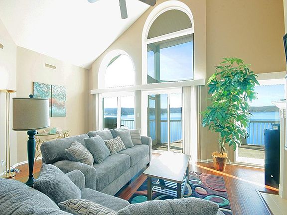 View, View, View! This spectacular condo is located at the prestigious Regatta Bay Condo Complex on Horseshoe Bend Parkway and overlooks the 12 mile marker of the Lake of the Ozarks. If you are looking for a condo with upgrades galore, this unit is for you. This spotless 3 bed, 3 bath, 1980 sq ft unit has a unique floor plan that boasts vaulted ceilings, 2 new gas fireplaces, quiet core wood flooring, granite countertops throughout, newer appliances, new sliding doors throughout, partial furnishings and a 12x30 boat slip (dock 2, slip 4L). Enjoy the sounds of the lake from your screened-in and partially covered back deck. Regatta Bay has two pools, tennis courts, picnic areas and plenty of space to spread out. Don't wait! Give us a call today to schedule your own private showing of this beautiful condo at Regatta Bay.