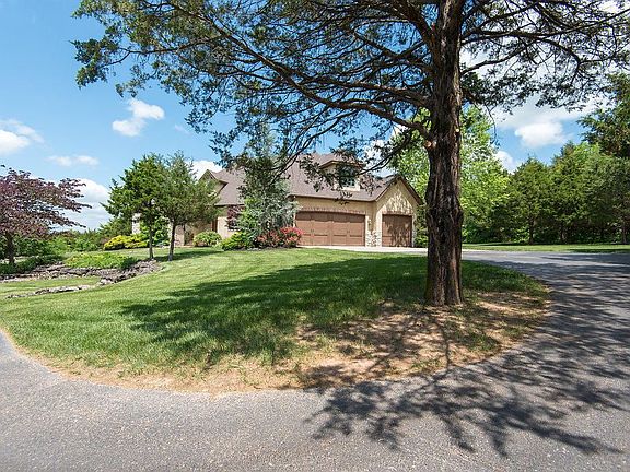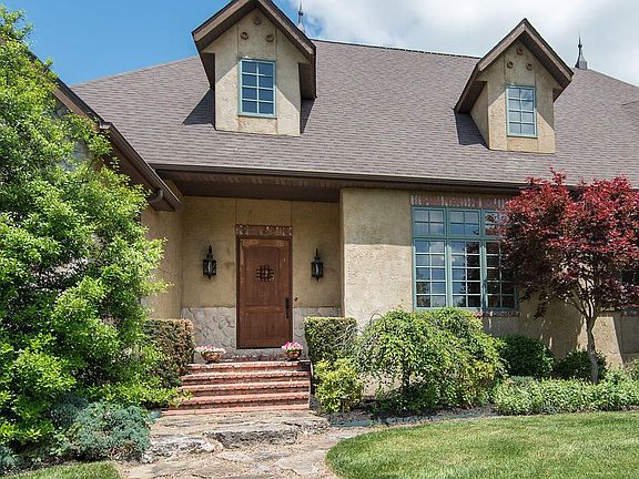 288 River Rock Rd. Ozark MO 65721 This immaculately maintained home with extensive landscaping, large outdoor patio, exterior fireplace, covered deck, circular drive and side entry 3 car garage all on 5 acres m/l. This is 6 bedroom, 5 bath home with 3 bedrooms on the main level including the master. A very open living/dining concept with a gourmet kitchen, Jenn-Aire stainless steel appliances, granite counters, center island with chef sink and cookbook storage. Adjacent formal dining! The living area includes beautiful hardwood floors, wood beamed vaulted ceiling, and floor to ceiling stone fireplace with magnificent views of the back yard. The master is oversized with vaulted wood beam ceiling, large master bath, double sink vanity, soaking tub, walk-in shower and large closet.On the second level are 2 more bedrooms, a full bath and a bonus area that can be a sitting area or media room. Downstairs you will find a wet bar with a large open family room and rec area, the 6th bedroom with full bath, exercise room and play room. Considerable storage areas downstairs as well an oversized John Deere room with overhead garage door. This home is a must see located in the exquisite gated community of The Bluffs at Riverside with private access to common area and the Finley River.