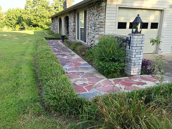3 bedroom 2 bath home with a 2 car garage an open floor plan and a huge laundry room. Amazing views of the river bottoms. Huge yard with a barn, garden wash station, 2 run dog kennel with concrete floor, and goat/livestock pen. 7 pecan trees, 5 plum trees, 1 peach tree and 1 cherry tree.
