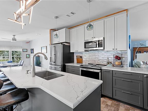 PRICE IMPROVEMENT. Welcome to this wonderful home in Riverwood Estates. No more expensive monthly lease payments you own your own land this beautifully updated three bedroom two bathroom home offers modern living with all new appliances and thoughtful upgrades. The home was fully remodeled just 18 months ago featuring a spacious kitchen with soft close cabinets and granite countertops! With an open concept living room, you’ll be able to entertain or wind down at the end of the evening. Walking into the master bedroom and bathroom you’ll experience full luxury with granite countertops, and two sinks and a walk-in shower! The newly updated laundry room has a sink to give more convenience and extra storage space. Walking outside you have a charming screened in porch perfect for relaxing in a carport with plenty of room to store your boat or golf cart! A separate workshop adds versatility and convenience for your projects or hobbies. Enjoy the benefits of owning your own land, along with access to the community boat ramp and this home conveys with a CrossCreek pool membership. Don’t miss out on this exceptional opportunity! Riverwood Estates is a 55+ community.