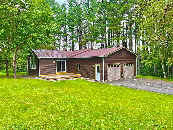 Don’t let this be the one that gets away. Tucked up away from the road on 4.43 lush acres you’ll find this beautifully updated home. Inside, soft, calming colors were chosen to freshen the walls, while LifeProof vinyl flooring covers most of the floors. The kitchen is outfitted with cherry cabinets, stainless appliances and a new charcoal tile backsplash that complements the dark counters. A clear sight line from the kitchen goes through the dining room and into the great room, where a triple window topped by a lunette window frame the beautiful backyard. Combine that with the cathedral ceiling, glass-front gas stove, and 6’ sliding door that opens to a deck, makes this the place you’ll want to gather with friends and family, or just spend quiet evenings at home. Down the hall is a totally renovated full bath with laundry hookups, primary bedroom with restored oak flooring, plus 2 more bedrooms. The basement den features a knotty pine bar with built-in stemware storage and room to lounge. A second renovated full bath, bonus room, and utility area complete this floor. In addition to the attached 2-car garage, there’s a detached 2-car garage/barn and a garden shed. The grounds offer wonderful lawn space, raised beds, apple trees, and so much privacy. Just 2.4 miles from Pensioner Pond boat access, 6.5 miles from Lake Salem beach, and minutes from a variety of shopping, dining, and entertainment options in the Derby/Newport area. Take the virtual tour to see all the details.