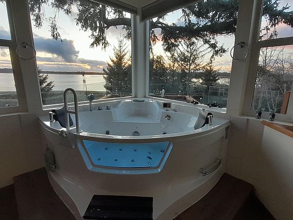 Breathtaking bay view and sunsets. Executive extended stay, 28 day minimum. 2 bedroom, 2 bath, fully furnished, all inclusive utilities (electric, water, garbage, wifi, Hulu, and Prime TV, double spa, stocked kitchen, weekly cleaning and gardener service. Newer stainless steel appliances, 2 microwaves, piano, game table (poker and bumper pool), entire west side of home is mostly glass with bay views, deck, 3 different dedicated work stations. Fenced garden area with goldfish pond, multiple picnic tables and BBQ grill. Clamming, fishing boat ramp, and beach within walking distance. No indoor smoking. 28-day minimum contract. Off street parking is available for 2 vehicles. References, background and credit checks, and renter's insurance are required. The home is 98 years-old and has been completely remodeled inside and out, except the facade (the city requires we establish use before being issued the facade grant.)