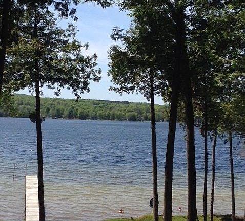 Enjoy 100' of sandy frontage in this impeccably maintained Intermediate Lake front home. Large wooded lot with paved driveway and extra paved parking space. An outdoor shower available for after water activities. Great room opens to a large deck. Open floor plan with windows facing the lake for expansive lake views. stone fireplace, Main floor master suite has a private bath, walk in closet, dressing area and double closets.
