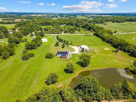 Beautiful home on 12.73 ACRES, centrally located to Hwy 50 and Warrensburg for an active family who enjoys being outside! Easy drive into KC for all of the amenities of the city. Ranch style home with 3 bedrooms and 2.5 bathrooms on the main level. In the lower level walkout you'll find a generously sized great room/rec room and an oversized 4th bedroom, plus a full bath. There is extra storage downstairs with the potential for a 5th bedroom on unfinished side. Newly upgraded laundry room with a large pantry as you walk into the kitchen. Kitchen and living room are open concept with a private dining room. Newly built screened in porch with a walk-out lower deck area to a cement patio and a fire pit. House boasts many other upgrades such as solar panels, back up Generac 24K generator with large propane tank, water filtration system, 80-gal water heater, soft water system, and leaf gutter protection system. A gorgeous view of the stocked fishing pond. What sets this property apart is that it has a 40x60 OUTBUILDING with a completely remodeled and enlarged 1,200 sf apartment. It has one bedroom, with bath/laundry room, includes a dishwasher, microwave and water filtration system, also attached to a backup generator. Open area for dining and living room, walks out to a newly build 14x18 screened in porch with recessed lights and fan. APARTMENT has all the bells and whistles. This is great for multi-generational living or as an income producing apartment home or guest house. Spacious garage parking with 3 garage doors, dedicated work bench area and a 12x12 closed in storage room. Garage has an outside 50-amp camper outlet. Seller has provided a one-year Cinch Home Warranty.