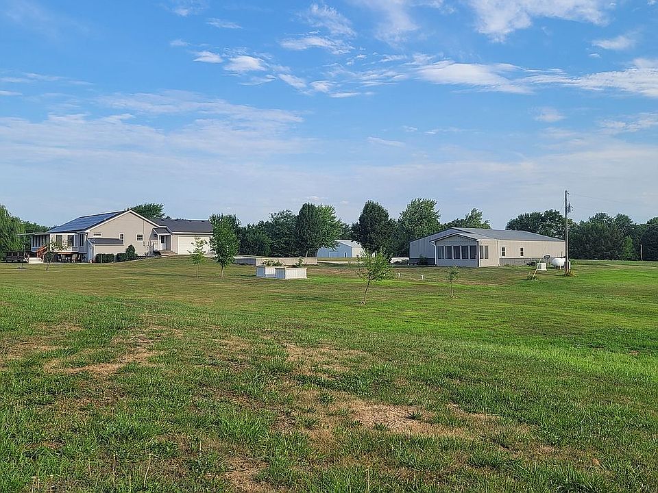 Beautiful home on 12.73 acres, centrally located to hwy 50 and Warrensburg for an active family who enjoys being outside! Ranch style with 3 bedrooms, 2.5 bathrooms upstairs; downstairs has a walkout basement with a half great room and an oversized 4th bedroom and full bath with extra storage with potential of 5th bedroom on unfinished side. Newly upgraded laundry room with a large pantry as you walk into the kitchen. Kitchen and living room are open areas with a private dining room. Newly built screened in porch with a walk-out lower deck area to a cement patio facing a fire pit. House boasts of many other upgrades such as solar panels, back up Generac 24K generator with large propane tank, water filtration system, 80 gal water heater, soft water system, and leaf gutter protection system. A gorgeous view of the stocked fishing pond. What sets this property apart is that it has a 40x60 outbuilding with a completely remodeled and enlarged 1200 sf rental apartment. It has one bedroom, with bath/laundry room, includes a dishwasher, microwave and water filtration system, also attached to a backup generator. Open area for dining and living room, walks out to a newly build 14x18 screened in porch with recessed lights and fan. Apartment has all the bells and whistles. Spacious garage parking with 3 garage doors, dedicated work bench area and a 12x12 closed in storage room. Garage has an outside 50 amp camper outlet. Serious inquiries only. Please call for appointment.