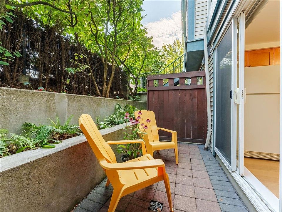 Sought after St. David’s Landing in vibrant & popular Lower Lonsdale neighbourhood! This Cozy & Chic 2 bed, 2 bath Townhouse provides a smart open-concept, well-designed floorplan w/ an abundance of natural light featuring a cozy gas fireplace. Enjoy ample room for cooking in the well-equipped kitchen, which flows effortlessly to one of the two patios for BBQing and entertaining! Upstairs, has a spacious primary bedroom w/ private Juliet balcony surrounded by privacy trees and Mtn views. Just down the hall, the 2nd bedroom for a cozy children's room, guest room or a functional home office. Recently updated flooring, paint, and blinds. Well-maintained building includes 1 parking, 1 storage, & pets allowed. Open Nov 1 Saturday 2-3 p.m.