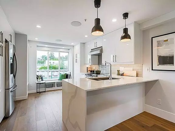 Stunning stainless steel designer chef's kitchen w/ breakfast island, upscale lighting and a cool window bench looking out to the mountains.The bedroom has the best built in closet/storage/wall unit with a 10x5 home office or nursery. Private entrance as well as a sunny large outdoor patio for dining, lounging and sunsets staring out to the Ocean