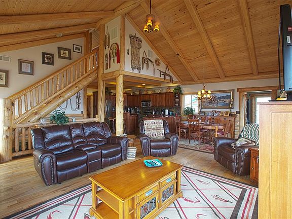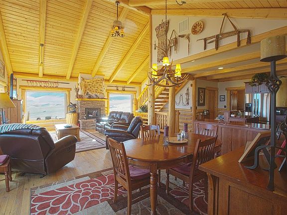 Spectacular 13.30 acre horse property! Newer log home has custom cabinetry, granite counters, pine floors, slate tile, stacked rock fireplaces, vaulted ceilings, huge windows to capture the spectacular view and fine log detailing throughout. Wide open floor plan and the master suite with glass shower and jetted tub is on the main level along with the gourmet kitchen, dining area and great room. Downstairs has 2 additional bedrooms, a laundry room, a bonus room and a bathroom. There is a loft that can be used as an office, bonus room or fly tying room. Equestrian amenities include an equipment barn, a 6 stall horse barn, loafing sheds, a tack room, and an arena. Other outdoor amenities are wraparound decks, a greenhouse, fenced raised garden beds, landscaping and a sprinkler system. Close to town, and the HOA provides access to public lands and stocked lakes. Don't miss this one, it's a horse lovers dream.