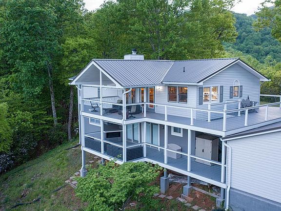 SEE YOU AT THE TOP! Absolutely no better VIEW in Franklin NC than this one! The home is spectacularly designed and appointed with full wrap around decks (no maintenance composite boards), terraces, new roof 2013 (metal), hardwood floors, whole-house fan, dual pane windows, spacious updated kitchen with view windows & breakfast bar and nook, fireplace, vaulted ceilings, pocket doors, 2800 ft elevation, new garage, 17K whole house generator. Huge bonus room lower level with full kitchen family room, 2 baths, and 1 large bedroom Perfect IN-LAW Quarters...inside/outside access End-of-the-road privacy. Appliances, window treatments, built in book cases, composite decks and deck screens all under 5 years old per owner. Whole house generator runs the entire home AUTO/ON/OFF serviced yearly!