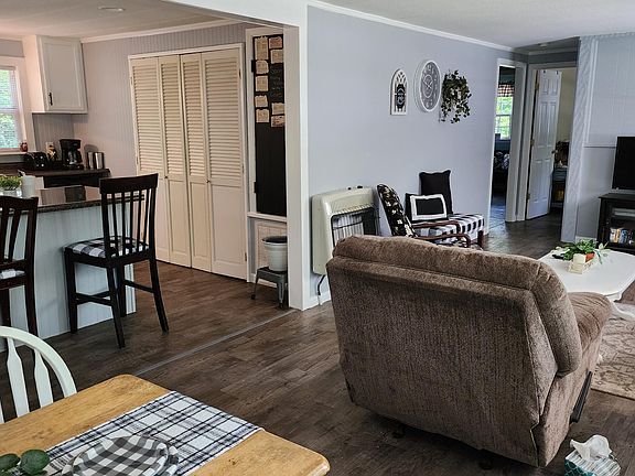 Open Concept with beautiful kitchen island, new roof, new ductless hvac, luxury vinyl plank flooring throughout, range, microwave, dishwasher, fridge, washer and dryer included. The woods behind and on the side provide lots of privacy .