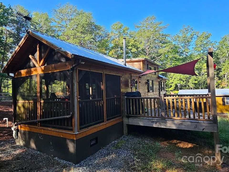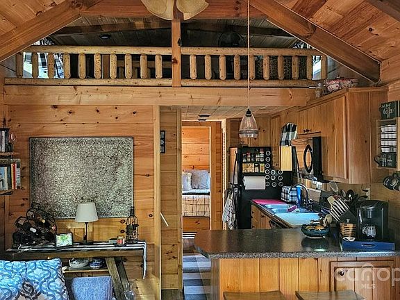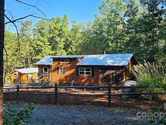 Pristine Green River Log Cabin located on 6 beautiful & private acres minutes to Lake Lure, apple farms, and fabulous NC wineries. Step into luxury w/ this high end tiny home that is fully furnished with a king size bed and 2 beds in the loft. Home has a detached solar powered 12’ x 24’ garage w/ loft, & two 1500-gallon rainwater cisterns for possible off grid living. Water is currently provided by a 300 ft+ deep well with a sediment filtration system. The pond is shared w/ all adjoining property owners. Stackable washer and dryer come w/ the home and a custom-built tiny woodstove. Screened-in porch is perfect for enjoying early morning coffee & sunrise. Deck is perfect for outdoor entertainment w/ sail screen providing comfortable shade. Long range winter mtn views are visible, w/ possible year-round views when cleared. Rose bushes among many other additions make this home ideal! Great for VRBO rentals. Schedule a viewing today!