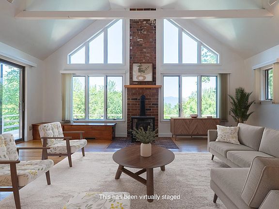 Welcome to “The Hollow”. This charming one-level gem with spectacular views of Mt. Mansfield, is situated on a 6.5-acre lot. The property is within walking distance of the Pinnacle Trailhead, providing miles of outdoor enjoyment year-round. As you enter the home, you are greeted by an expansive living area with cathedral ceilings and a wall of windows that capture the stunning mountain view over a large man made pond—truly the focal point of the home. To one side of the living area, you'll find two bedrooms with ensuite bathrooms, along with a generously sized office. On the opposite side is the dining area, kitchen, laundry room, and mudroom with access to the two-car garage. Above the garage, there is a large storage area with the potential to create additional living space. The walkout lower level is mostly a blank canvas, featuring a cozy sitting area with a beautiful brick fireplace and a three-quarter bathroom. This area of the home was once an artist's studio but now offers various possibilities, such as a family room, media room, or bunk room…you choose. Venturing into the village of Stowe from this “Hollow” location is only a 5-minute drive away and it is approximately 20 minutes to the ski resort. This home offers both tranquility and accessibility, making it the perfect retreat.