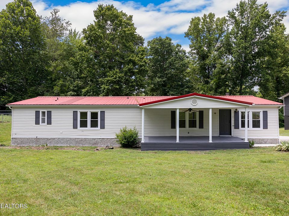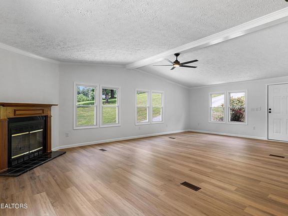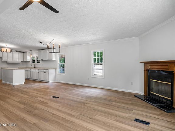 Are you searching for a spacious, move-in ready home in Jacksboro? Look no further! Nestled on a quiet dead-end street, this beautifully remodeled gem is waiting for you. Step inside and be greeted by an open-concept living area, bathed in natural light from ample windows and featuring a cozy wood-burning fireplace, perfect for those chilly winter evenings. The expansive kitchen offers plenty of cabinet space, an oversized single-basin sink, and a stylish island with butcher block countertops. The split floor plan includes two oversized bedrooms on one side of the home and a stunning primary suite on the other. The primary suite boasts abundant natural light, a large walk-in closet, and an ensuite bath with double vanities, a soaking tub, and a shower. A convenient mudroom with a laundry area leads to a spacious, partially covered back deck overlooking your fenced-in yard. With new features throughout, from crown molding to elegant LVP flooring, this home offers incredible value. Located just minutes from Norris Lake and I-75, this is a rare find in Jacksboro. Call today to schedule your private tour!