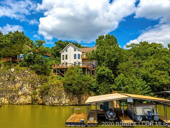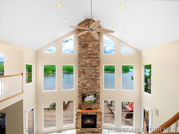 This well thought out custom built home has never been on the market. Offering ALL of the amenities you are looking for in a lake home this newer constructed home is MOVE IN READY! Views of the quiet main channel of the Big Niangua frame the main level living room and kitchen with the most stunning floor to ceiling vaulted windows. A rare find with the view from a birds eye yet only steps from the house to the dock. This home features four bedrooms plus an office w/closet that can be a fifth even having its own full bath. Again, the functional floor plan is PERFECT for large families or full time. No work to be done here! Incredibly convenient location just 1.5 miles off Hwy 54. Oversized two car garage, surround sound system inside and out, lot to the east is lake access only and only one house past leaving you very private. Great boating, skiing, kayaking, paddle boarding, swimming, fishing, bird watching right off the back deck and dock!! Only 3 min boat ride to Ha Ha Tonka!