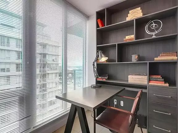 Tastefully decorated 1 bedroom plus home office / den suite has partial views of DT & False Creek . Suite shows like new w efficient layout. Open Kitchen w Gas Cooktop. Spacious walk in closet and laundry room. Nice finishes t/o. For added comfort Air Con. Building has lovely lobby entry w concierge. Common Roof Deck