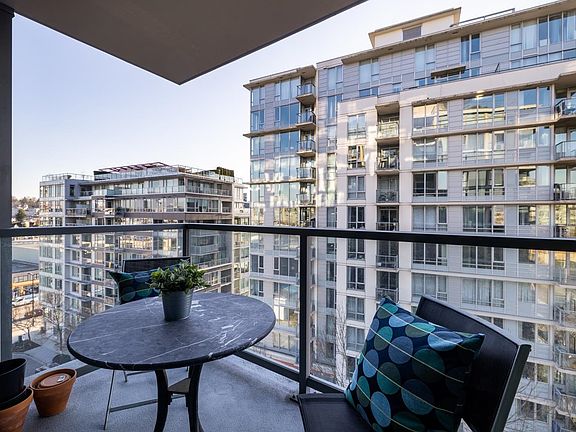 Waterfront living with this stunning 1bed + den home in the heart of False Creek/Olympic Village! Welcome to the James, a luxurious concrete building by Cressey. This home presents a well laid out open concept floorplan with elegant hardwood flooring, A/C and floor-to-ceiling windows leaving the interior bright and airy. Cook and entertain in your chef's kitchen with high-end appliances and custom storage solutions. Appreciate stunning views of False Creek and the City from your NW facing balcony. Large bedroom with WIC & cheater ensuite. Den space, perfect as a home office round out this fabulous home in a well maintained building with 5,000 sqft indoor/outdoor roof lounge, gym, sauna and concierge. Steps to seawall, restaurants, cafes, transit & more. By appt only on Mar 5 & 6, 2-4pm