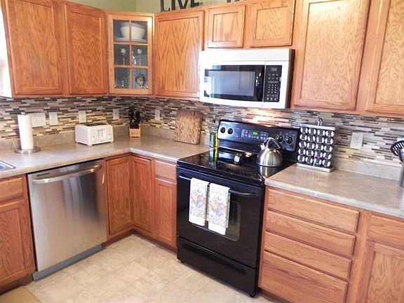 Picture Perfect! New glass tile back splash,bath,lighting,stainless,crown and wainscoat,all new paint,covered porch,26 x 18 Trex deck,trelis. Stone patio,fire pit,raised garden,outside lighting,professional landscaping,quiet cul de sac,pool community