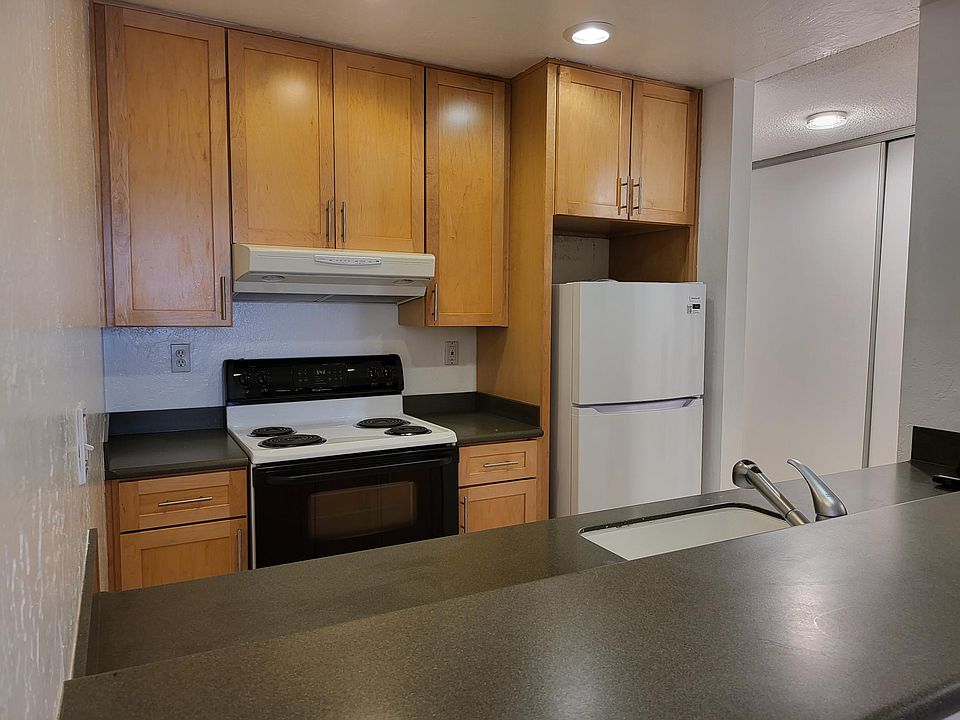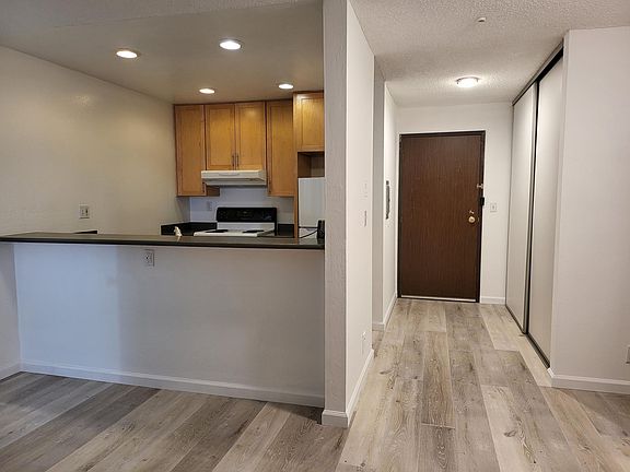 Top floor condo updated with quartz counters and plank flooring. Ten-foot living room ceiling. North-facing balcony. Comes with full privileges at HOA amenities -- work out in gym or long pool heated year-round; then unwind in dry redwood sauna or spa-under-stars. Walk score 95. Easy freeway access. Walk 14 minutes to MacArthur BART or Rockridge BART. On AC Transit lines 12 and 51, and near TransBay V. Comes with one designated parking space in attached garage. Community laundry on same floor. Year lease. Deposit $2900. Owner pays trash service plus cold and hot water. Sorry, no smoking. Cat okay. No application fee. Once you have a signed lease, you pay $150 toward the Move-in fee. Contact this broker to arrange a tour. Owner pays for water and trash; tenant pays for power and internet/cable. Cat okay, with iinsurance. No smoking anywhere in condo complex.