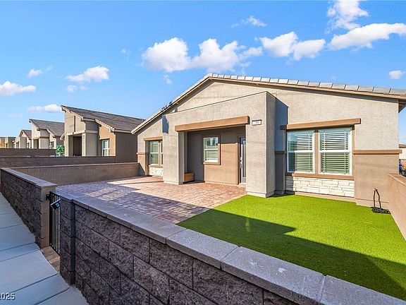 RENT INCLUDES THE TRASH SERVICES. Charming single-story home in a desirable 55+ gated community in Henderson! This 2-bedroom, 2-bath gem features an open layout with upgraded flooring, plantation shutters, and a modern kitchen with a large island and stainless-steel appliances. Enjoy a private front courtyard, low-maintenance backyard, solar panels, and a finished garage with epoxy floors and built-in storage. Perfect for easy, comfortable living!