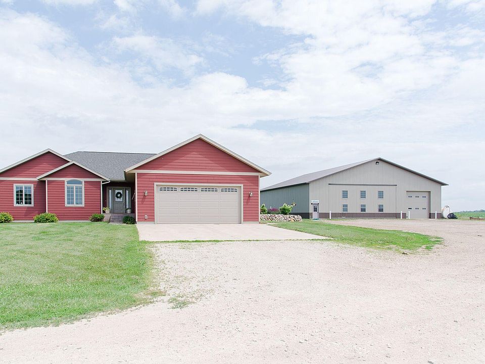 Dreams do come true! AMAZING custom built home on 80 acres of Tillable farm land. The house and building currently sit on approximately 3.5 acres and could be separated from the tillable Step into this beautiful large entryway with new wood floors here you will see an open floor plan, with a beautiful large living room, kitchen and dining roomNext you will Make your way down the hall where you will find a large full bathroom, 2 bedrooms and a master retreat with full bath.Main floor laundry/mud room is right off the attached two car garage.Walk down the basement and find a beautiful large family room, utility room, storage another full bathroom with double sinks and 2 beautiful large bedrooms.Also there is a bar that has been started all it needs is your finishing touches