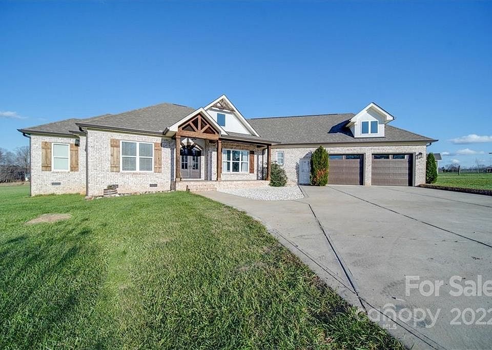 Offering 3.5 acres in a beautiful rural setting, yet minutes from Mooresville, this property is not to be missed! This all brick home with split floor plan is like new with many special touches and design features throughout. The entryway is a showstopper, with a tongue and groove barrel ceiling and elegant chandelier. Kitchen creates perfect entertaining space with extra large island accommodating seating for 4 or more. Primary suite is spacious with dual vanities and generously sized walk-in shower and closet spaces. Tall ceilings and ample windows throughout the home create an open inviting space with lots of natural light. Take in the sunset from the covered back porch with vaulted ceiling.