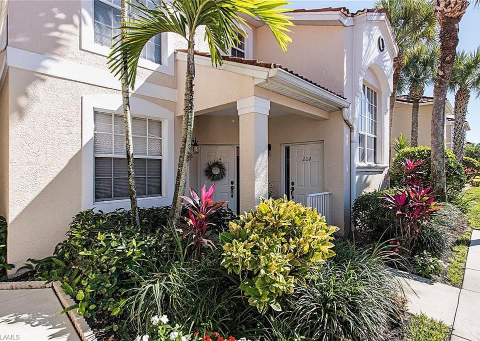 C.17158 - Move-in ready coach home with gorgeous lake and golf course views of 17th fairway. This tidy and bright 2+ den unit is a perfect blank canvas - a decorator's dream with tons of windows and soft, neutral paint tones throughout. Extra storage area near front door is the perfect spot to stash your golf clubs. Included with this unit is a detached 1 car garage. Best of all, a quick stroll from your front door leads to the community pool! Another bonus - This subdivision of coach homes is a few months away from new roofs and new exterior paint already approved by the board (2020), no added cost to HOA. Cypress Woods Golf and Country Club is fantastic BUNDLED GOLF COMMUNITY value with ongoing activities and entertainment. A variety of amenities including a scenic 18-hole golf course, pro shop, putting green, aqua driving range, fitness center, tennis, pickleball, bocce, heated pool, lap pool, walking/bike path, grill room and formal dining. Awesome North Naples location just minutes to I-75, shopping, dining and of course, the gorgeous beaches!