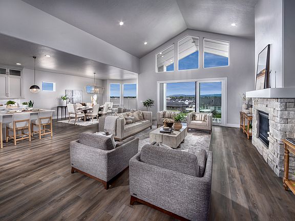 You'll love this single-story stunner, which showcases a 20' vaulted ceiling through the great room, perfectly capturing the views of Bogus Basin and Stack Rock. Luxurious finishes and a beautiful master suite featuring massive windows, free-standing tub, large walk-in closet, and private access to the covered patio. The chef's kitchen and expanded dining room benefit from the natural light and open layout of the home.