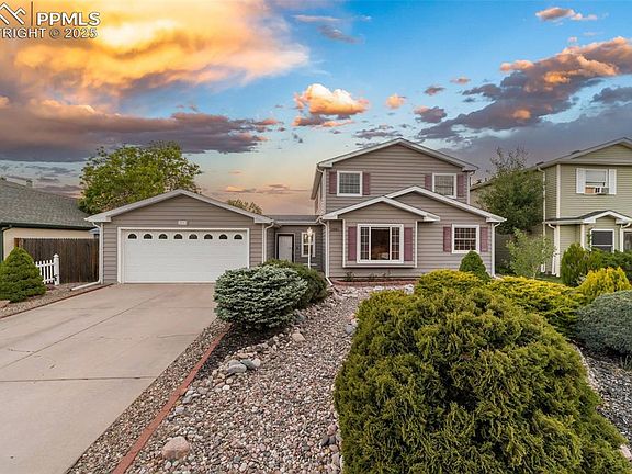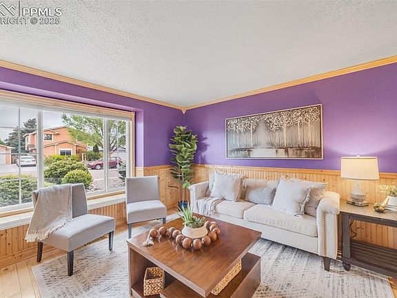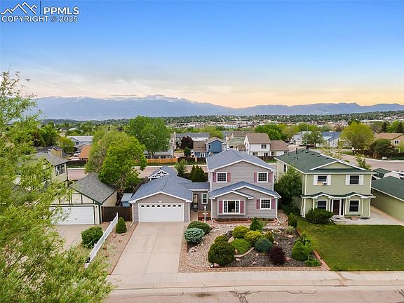 Welcome to a true GEM nestled in the Northcrest neighborhood- Boasting UNOBSTRUCTED mountain views, this meticulously-cared-for 3 Bedroom Home with NO HOA comes with your own personal Backyard Oasis showcasing pride of ownership at every corner! Entering the home, a tiled mudroom conveniently connects the main home with the 2 Car Oversized Attached Garage. The charm of the home immediately begins as you open the Front Door– the Hickory Hardwood, the Living Room with Dining Area, the Crown Molding, Wainscotting, and a Bay Window overlooking the pristine front landscaped gardens. The Eat-In Kitchen boasts breathtaking finishes- SS Appliances, Granite Countertops, Tile Backsplash, 42” Glazed Maple Cabinets, Pull-out Shelves/Spice Cabinets. Around the corner, the Family Room is set on Acacia hardwood, enveloped by Venetian Plaster Walls, and accented by the wood-burning Fireplace with granite surround. A Powder Bath is conveniently located on this level for guests. Step through the Laundry Room outside to the picturesque backyard, leading you along private pathways by mature landscaping- flowering perennials, fruit trees, and a custom water feature. Surrounded by a 23’ trex composite patio, the Storage Shed and the fully finished 17’ Sunroom offer endless possibilities to make your own (yoga retreat, private gym, art studio). A terraced garden area and double fence completes this serene outdoor living space, perfect for firepit conversations with the dramatic mountain views in the background! Take the stairs to the second level and step into your personal retreat in the expansive Primary Suite Bedroom, complete with walk-in closet and en suite Primary Bathroom. Two additional large Bedrooms and Full Bathroom complete this upper level. Central Air, Low-E Double Pane Vinyl Windows, Whole House Humidifier! Minutes away from Powers Corridor along with Peterson & Schriever Space Force Bases, Ft Carson, Shopping, Entertainment, & More! **NEW ROOF PRIOR TO CLOSING**