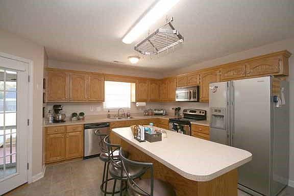 True 4 bedroom home with walk in closets in all bedroom. Cathedral Clg in Great Room. Kitchen over looks fenced back yard and has large island. Open dining room to kitchen. Split floor plan with master having walk in closet and private bath. Easy access to screen porch and back patio through dining/kitchen area. Utility room with storage cabinets. Stainless steel appliances convey. Brand new Central Air system install (2020). New floors installed (2021)