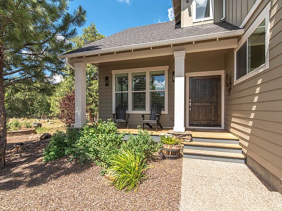 A rare Farmhouse Estates home backing to premium green belt on a cul-de-sac. This custom Holdsworth Construction home is just under 3,000 sq.ft. w/ forever views of Ponderosa Pines. In addition to the large bedrooms, a loft & main floor flex room offer a mix of modern space & versatility. Designer amenities include hardwood floors, custom tile flooring, back splash, window seats & craftsman boxed ceilings. The kitchen is a chef's dream with Wolf range, custom cabinets, craftsman crown molding, built ins in the mudroom & separate laundry room (with chute). The well appointed master en-suite has two walk in closets & an over sized shower. Professionally landscaped outdoor living enclaves overlook the green belt & provide a low maintenance peaceful place to enjoy Flagstaff all year round.