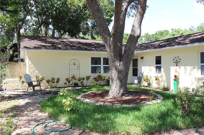 Enter into this charming 4 bedroom, 3 bath home through an adorable courtyard. Home has spacious, open feel. 2 master bedrooms on opposite sides of the home for privacy. The living room dining room combo flows into the kitchen. Large island in the kitchen with plenty of counter cabinet space. Enter the screened in patio through the French doors off the kitchen. Patio over looks mature landscaping. Beautiful pavered open patio just steps from the screened in porch and utility shed. Well maintained home. Newer double pane windows. 2017 water softener.