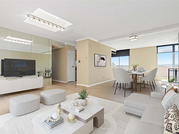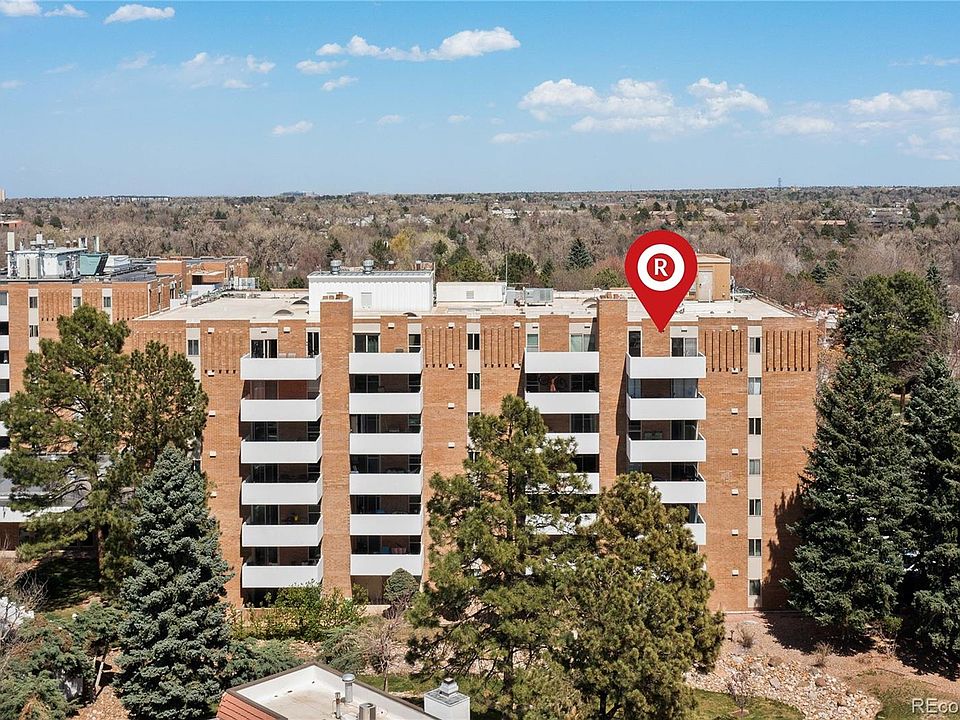Top-floor penthouse unit with stunning west-facing views of the mountains and the Denver Tech Center. This bright and sunny 2-bedroom, 2-bath condo offers an open-concept layout with brand new LVP floors, large windows, and a sliding glass door that fills the space with natural light. Step out onto your private balcony to enjoy sweeping views and relaxing outdoor space overlooking the grounds and enjoy beautiful Colorado sunsets. The kitchen features updated appliances, a breakfast bar, and stylish finishes including new light fixtures, backsplash, and fixtures. Both bathrooms have been refreshed with new tile, sinks, and faucets. Other upgrades include two-panel closet doors and an extra-large closet in the second bedroom. Enjoy spacious living and dining areas perfect for entertaining or relaxing, plus the convenience of two deeded underground parking spaces and a private storage closet. Community laundry is located on each floor for easy access. Residents enjoy incredible amenities including both indoor and outdoor swimming pools, an exercise room, locker rooms with full baths, a game room, and a party room with a full kitchen. An onsite manager is also available. Located next to groceries and fitness club, and just minutes from the light rail, I-25, Bible Park, and the Highline Canal, this high-rise condo has everything you need in one place.