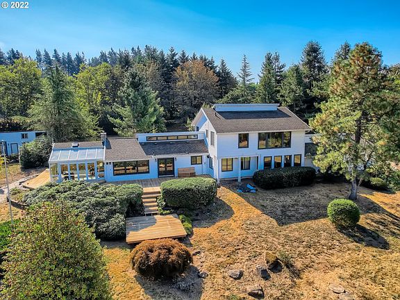 Private hilltop location with a never ending view! Gorgeous rolling field, orchard, detached guest quarters, and optional main floor master suite. Enter to find soaring vaulted ceilings, extensive hardwood flooring, and knotty wood accents throughout, flowing with natural light! Open great rm floor plan w/ floor to ceiling stone fireplace, kitchen w/ SS built-in appliances, and attached solarium with gas fireplace! Primary bed with views, fireplace, and spacious ensuite. Mins. to 205/Stafford.