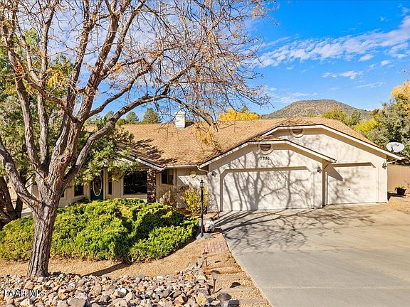 This lovely single level home is located in the highly desirable neighborhood of Kingswood Heights. Nestled among mature trees and Willow Creek, this home is the perfect place to enjoy wildlife and nature. The interior is spacious and open with vaulted ceilings. French doors lead you to the covered patio with views of Willow Creek. Newer luxury vinyl plank flooring, freshly painted interior, NEW ROOF in 2023. Beautifully landscaped front and back. This home has been meticulously maintained inside and out. 3 car attached garage, two covered patios. Fenced back yard. Great location. Close to shopping, medical, hiking and biking. 10 minutes from Prescott's historic downtown. No HOA