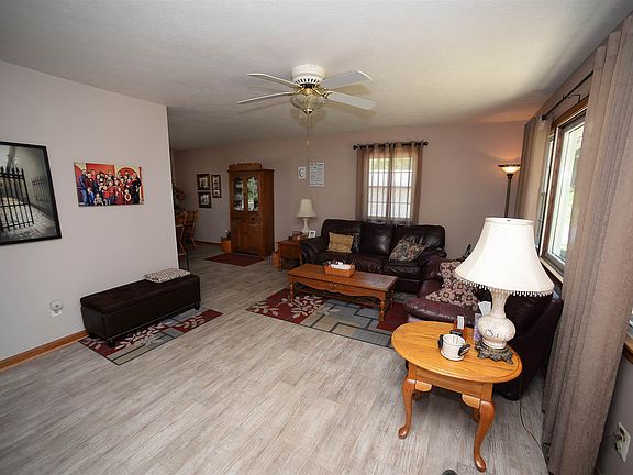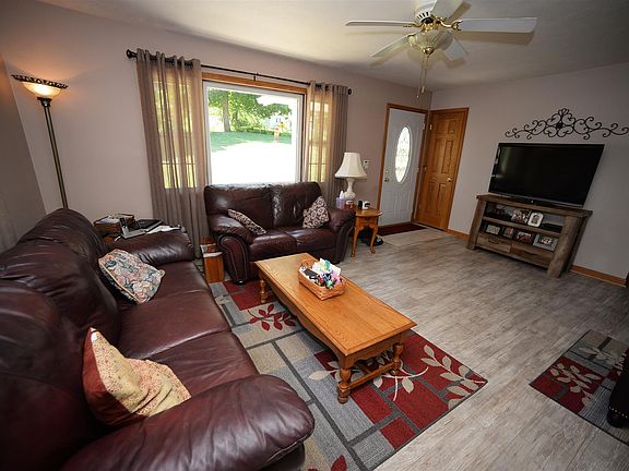 Country Brick Ranch home sits on 1.4 acres of beautiful scenery with trees and a stream! Home features three bedrooms, two bathrooms, family room, living room, kitchen with island, and dining room! Home has a whole house gas generator, three car detached garage 24x40, and pole building 32x48 with negotiable