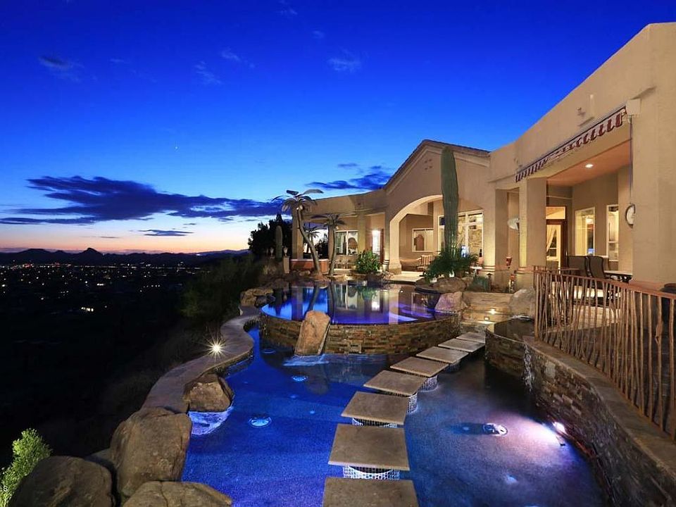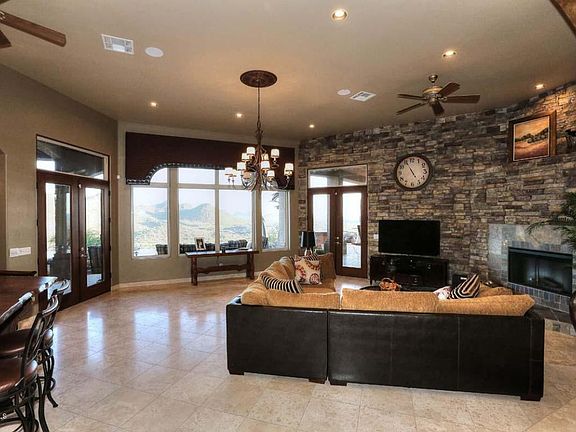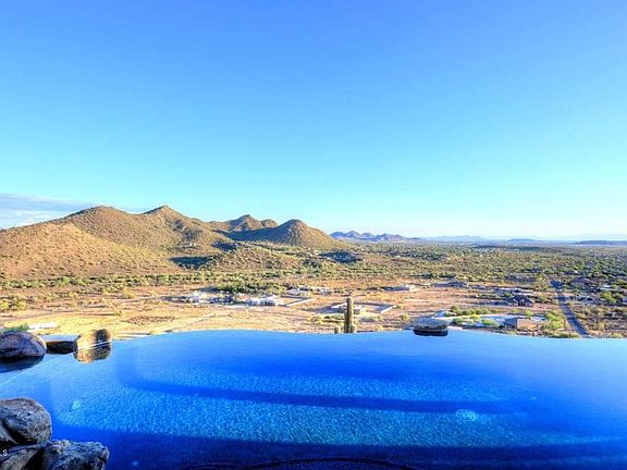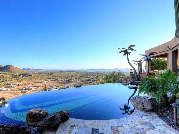 The views do not get any better than this! Come see the home that has a resort feel. From the carefully planned negative edge pool, to the open floor plan of the home, you will not want to leave. This home has granite through out, travertine floors, custom wet bar, built in BBQ, covered patio with retracting awning, remote sun shades inside, and much more. Above ground spa and 3 metal palm trees do NOT convey.