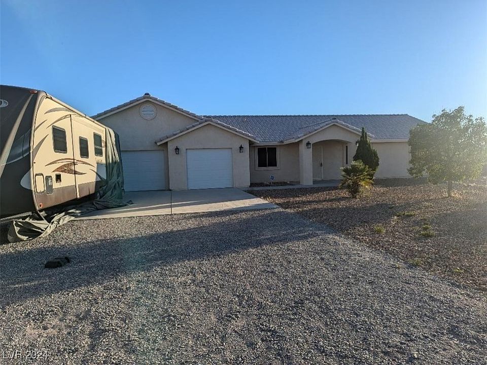 ON .46 ACRES THIS 1713 SQ FT HOME HAS 3 BED/2BATH 3 CAR GARAGE SPLIT FLOOR PLAN WIH LANDSCAPED FRONT YARD AND FULLY FENCED BLOCK WALL BACK YARD WITH RV GATE AND MANGATE. KITCHEN OVER LOOKS LIVING ROOM WITH FIREPLACE FOR FAMILY GATHERINGS. OVERLOOKING THE PAHRUMP VALLEY AND BARELY LIVED IN. MOVE IN READY. NO HOA.
