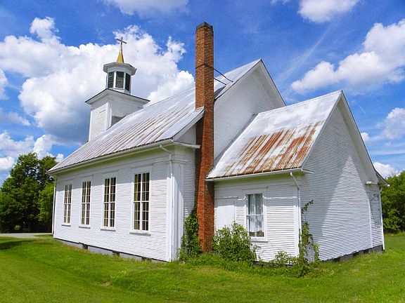 Lovely country church on 1.5 acres overlooking great views. This would be a unique home in the countryside with a little work. The septic is unknown. There is a spring but it needs work, possibly a pump. Being sold as is. If you're looking for a special property to create your own home or getaway in the NEK, this is it.