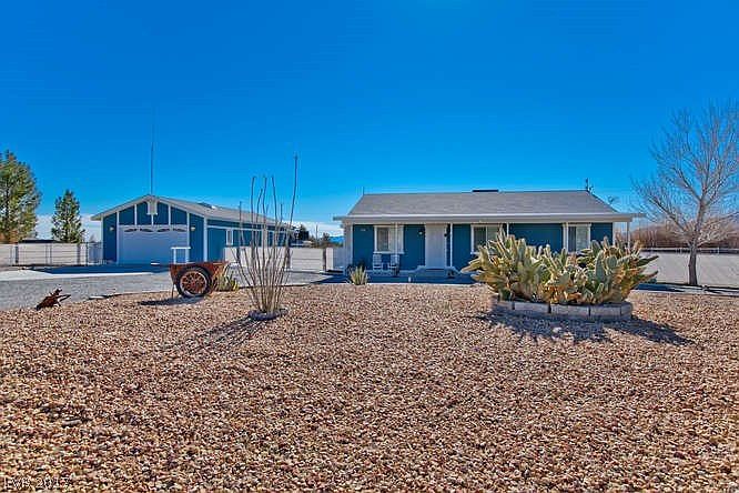 Gorgeous single story, 3 bed 2 bath home on horse property. This is a custom home with 10' ceiling and an open floor plan with spacious rooms. This property consists of 2 separated horse corrals with electric tape fencing, a dog kennel, large front and rear covered patios, 2 separate sheds, 23X21 work shop equipped with sky lights and built in shelving, and an 18X8 Koi pond.
